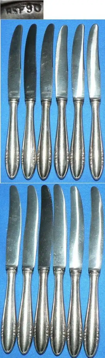 Bitte schauen Sie auch in unseren Shop Sie bieten hier auf sechs wunderschöne Jugendstil-Messer, Obstmesser die Griffe sind versilbert 90er Silberauflage Länge ca. 17,5 cm, Gesamtgewicht ca. 239 Gramm im guten gebrauchten Zustand, siehe Foto nicht geputzt oder gereinigt Auktionbedingungen über Zahlung und Versand: Innerhalb Deutschlands kostenloser Versand. Bezahlung fällig nach Auktionsende! Keine Schecks!!! No checks!!! Sie werden innerhalb von 24 Stunden nach Auktionsende von uns über ebay automatisch angeschrieben. Unser Unternehmen nimmt an dem Befreiungssystem gem. § 6 Abs. 3 (ab 01.01.2009 § 6 Abs. 5) VerpackV teil, wir haben einen FREISTELLUNGSVERTRAG mit der Landbell AG geschlossen. Bitte beachten Sie auch meine anderen Auktionen! Mehrwertsteuerhinweis: Unsere Artikel unterliegen der Differenzbesteuerung, nach §25a UStG
