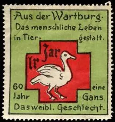 Aus der Wartburg. Das menschliche Leben in Tiergestalt. Das weibliche Geschlecht., Größe/Zustand: 5x5 , leicht geknittert, Original alte Reklamemarke die seinerzeit für die Werbung benutzt wurde