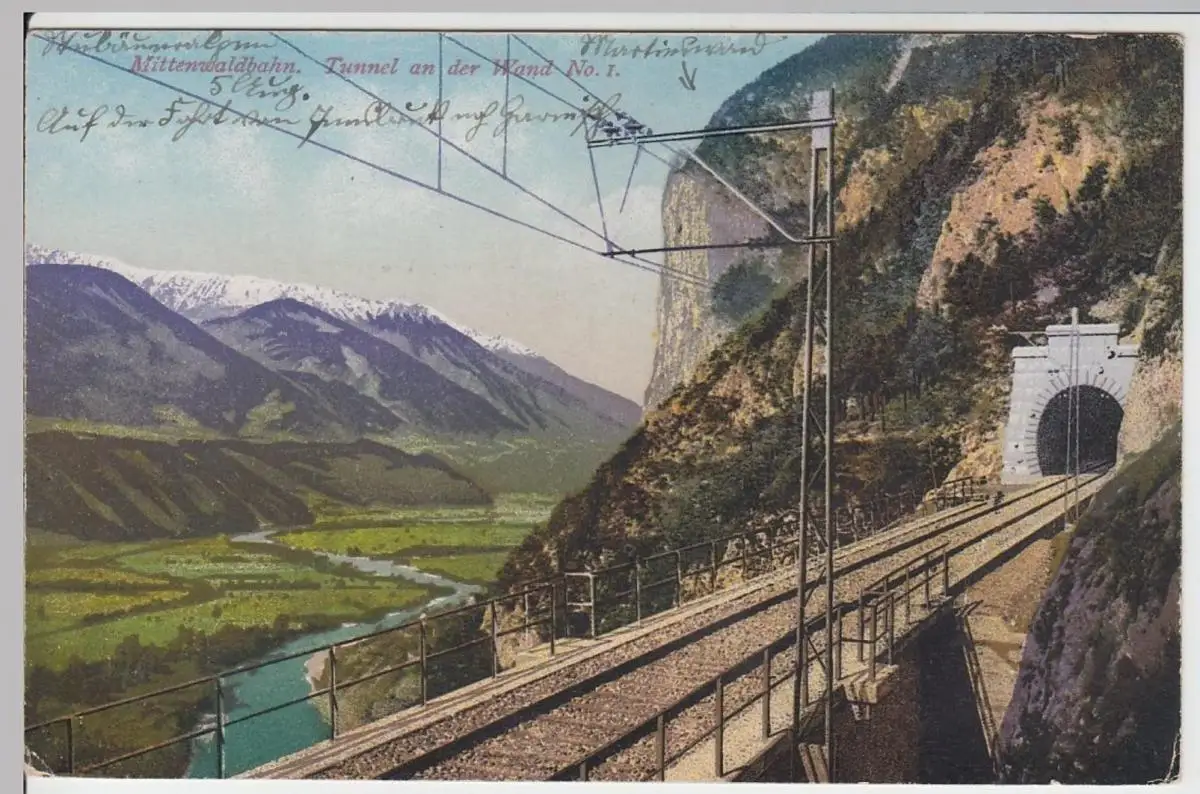 - (60174) Ansichtskarte, postcard, PPC - Mittenwaldbahn, Tunnel an der Wand No. 1, vor 1945
