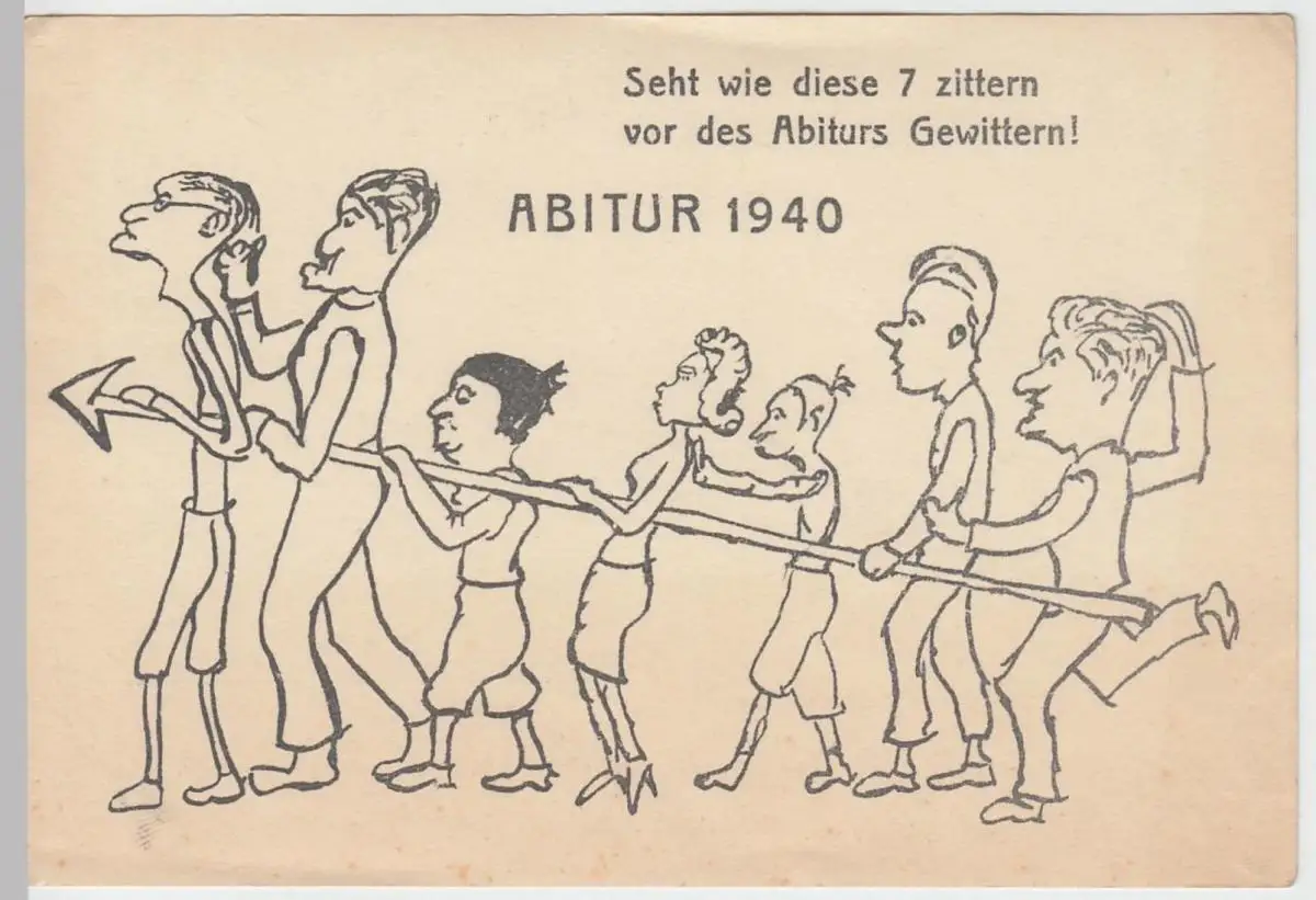- (60644) Ansichtskarte, postcard, PPC - Abitur 1940, Scherzbild mit Spruch 1940