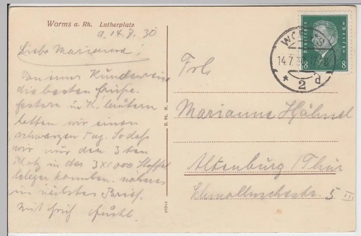 - (61263) Ansichtskarte, postcard, PPC - Worms, Lutherplatz mit Denkmal 1930