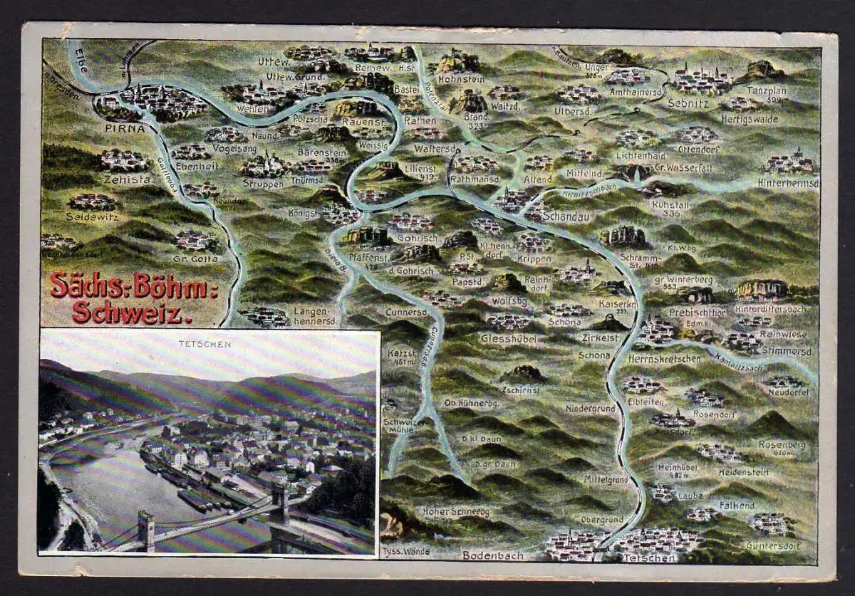 62260 Ansichtskarte Tetschen Sächs. Böhm. Schweiz Landkarte