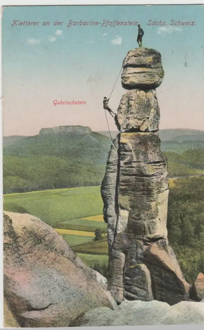 (62999) AK Sächsische Schweiz, Barbarine Pfaffenstein, Kletterer 1926
