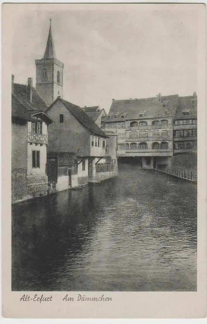- (64466) Ansichtskarte, postcard, PPC - Alt-Erfurt, am Dämmchen, Ägidienkirche, vor 1945