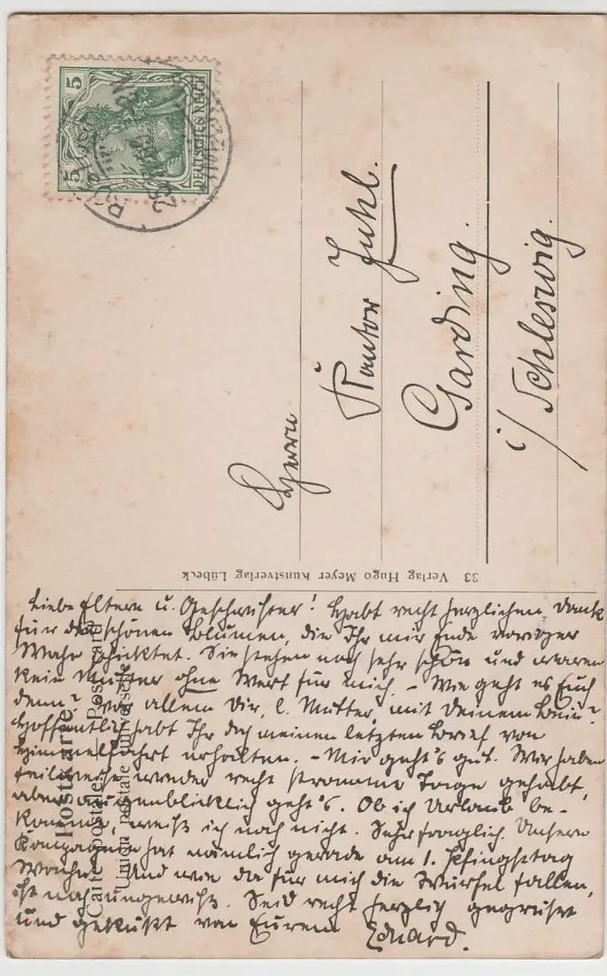 Diese Postkarte wurde von meinem Opa geschrieben und versendet. Ein Stück Erinnerung von fast 100 Jahren