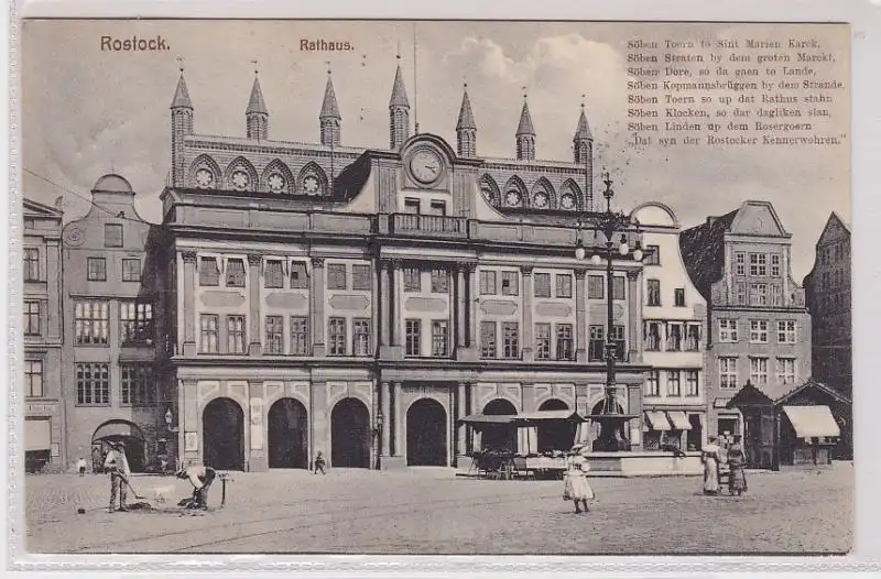 65456 Ak Rostock - Markt mit Rathaus 1913