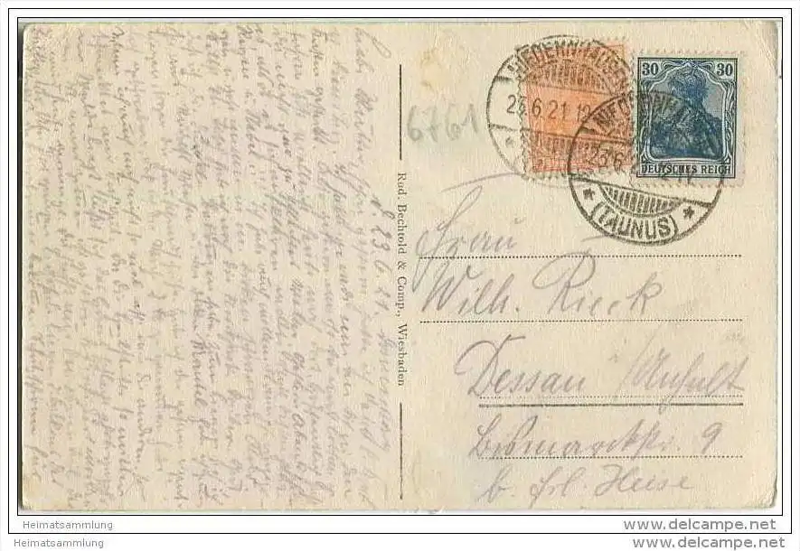 65527 Niedernhausen - Verlag Rud. Bechtold & Co. Wiesbaden - Markierungskreuz bildseitig (G26271) gel. 1921