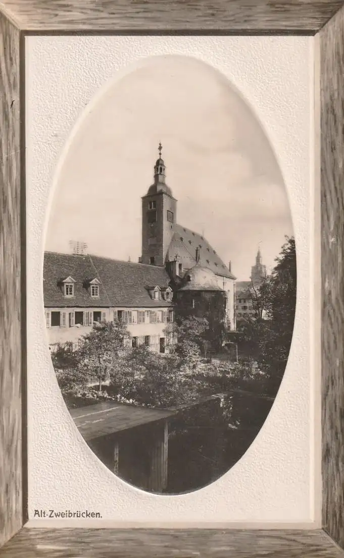 6660 ZWEIBRÜCKEN, Alt-Zweibrücken, Kirche im Passepartout-Rahmen, Verlag Ambros