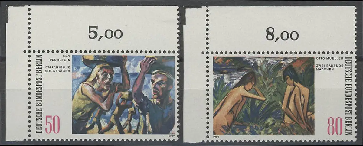 678-679 Moderne Gemälde Pechstein / Mueller, Ecke o.l. Satz **