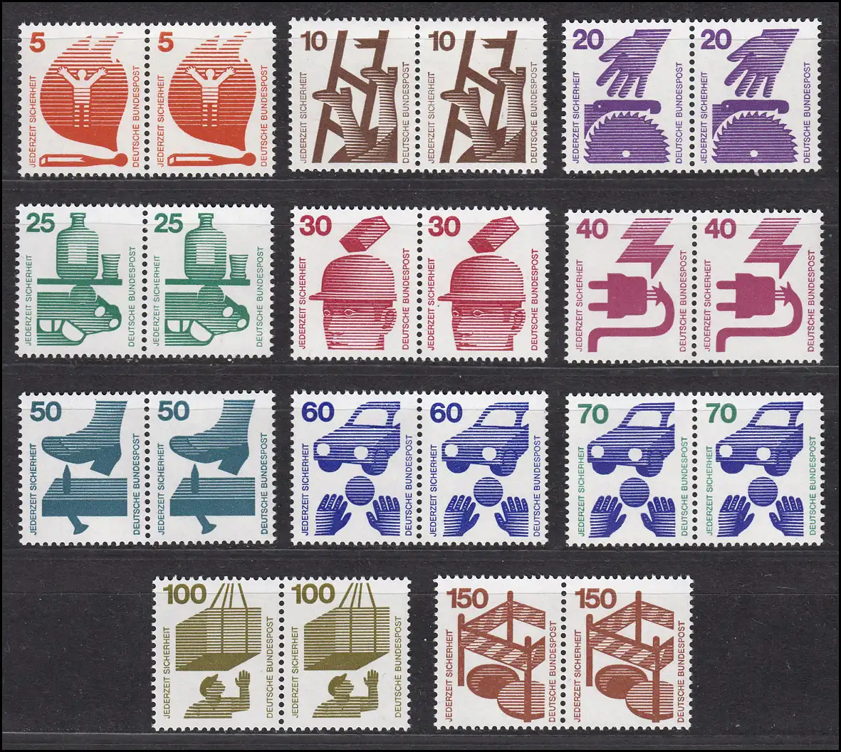 694 ff Unfallverhütung 11 Werte, waagerechte Paare, Satz **