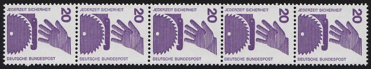 696c Unfall grüne Nr. 20 Pf, 5er-Streifen + Nr. ** postfrisch