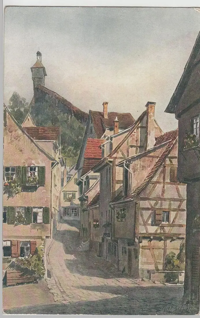 - (69983) Künstler Ansichtskarte, postcard, PPC - Marschall, Esslingen, Neckar, Geiselgasse, Hochwacht