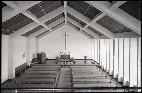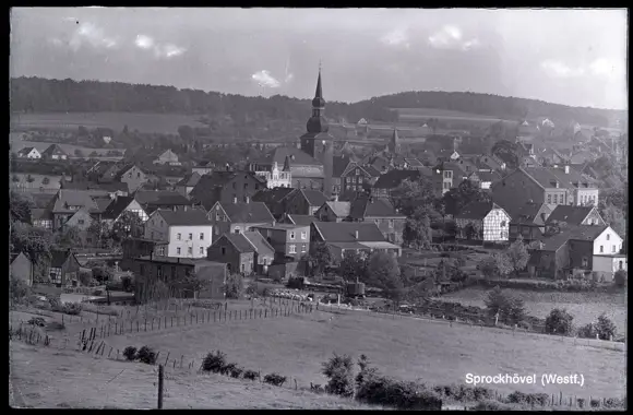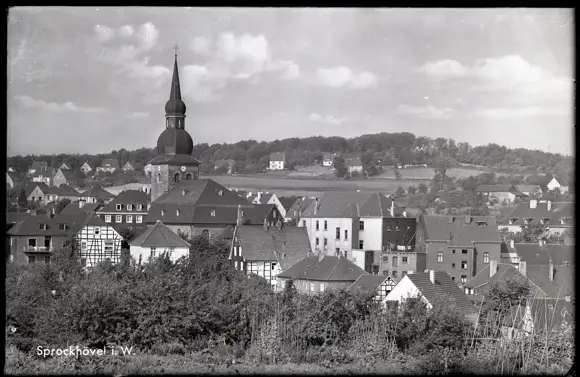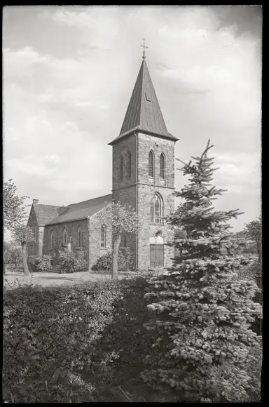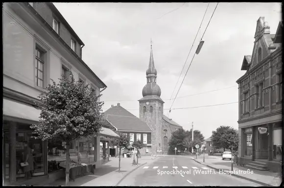 7 Glas Negative Sprockhövel im Ruhrgebiet, Kirche, Gesamtansicht, Straße