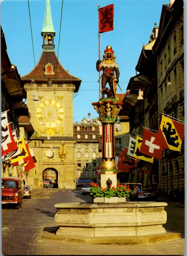 7067 - Schweiz - Bern , Zähringerbrunnen und Zeitglockenturm - nicht gelaufen