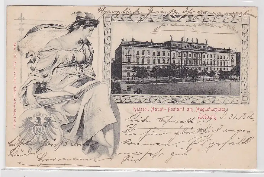 70709 Ak Leipzig kaiserliches Hauptpostamt am Augustusplatz 1902
