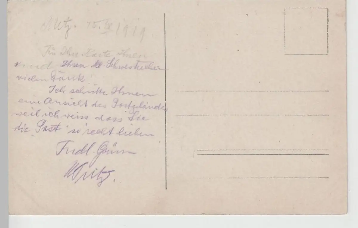 Diese Postkarte wurde von meinem Opa geschrieben und versendet. Ein Stück Erinnerung von fast 100 Jahren