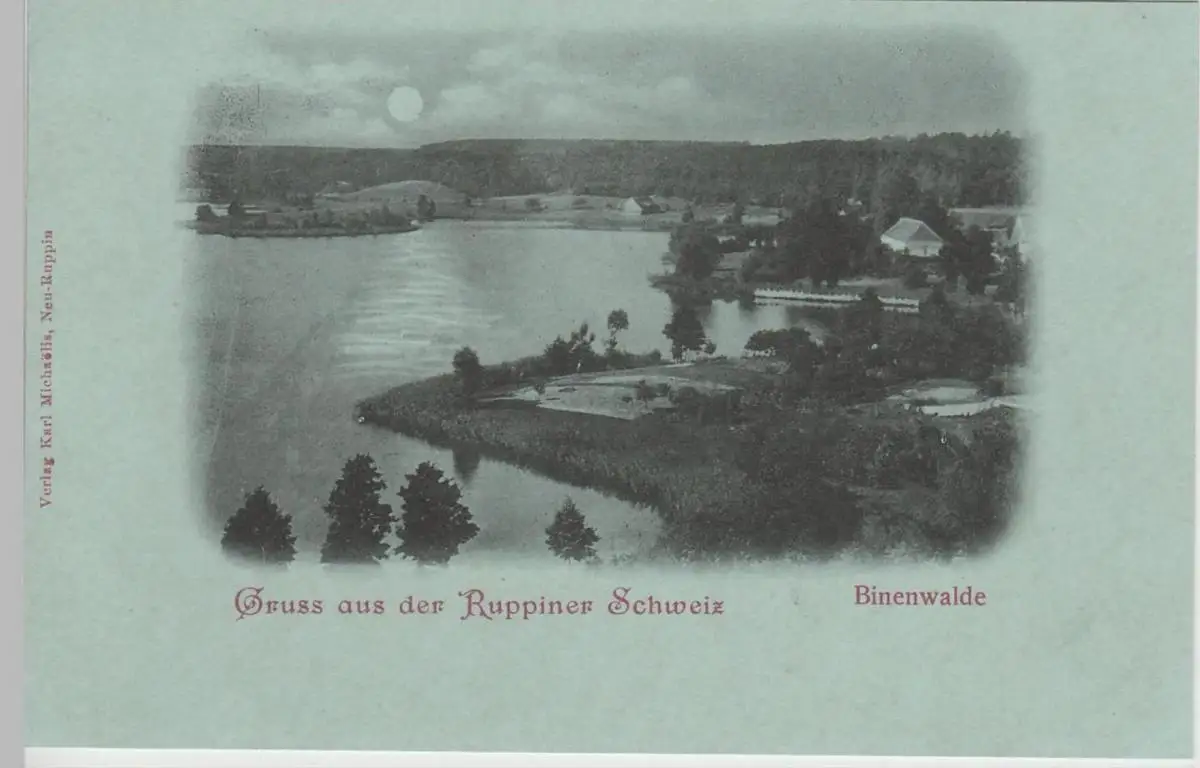- (71397) Ansichtskarte, postcard, PPC - Gruss a.d. Ruppiner Schweiz, Binenwalde, Mondscheinkarte um 1900