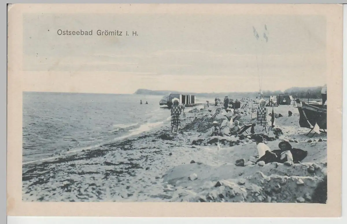 - (71533) Ansichtskarte, postcard, PPC - Ostseebad Grömitz, Am Strand 1909