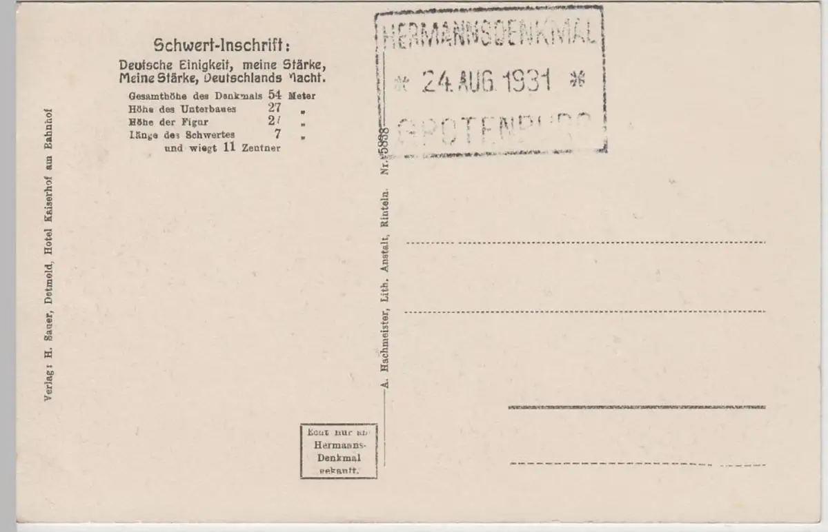 - (71976) Ansichtskarte, postcard, PPC - Hiddesen, Hermannsdenkmal 1931