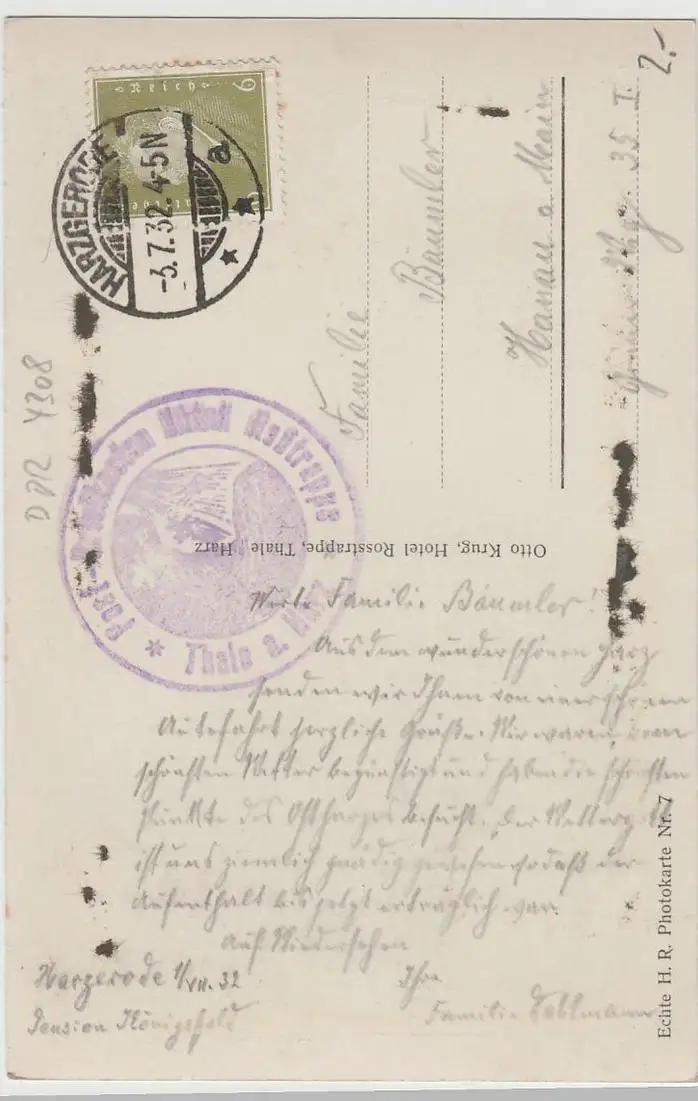 - (72507) Foto Ansichtskarte, postcard, PPC - Bodetal im Harz, Rosstrappefelsen, 1932