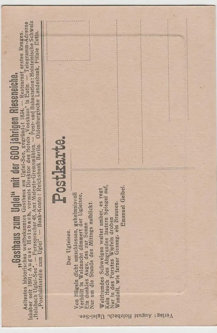 - (73347) Ansichtskarte, postcard, PPC - Ugleisee, Durchblick vom Forsthaus, um 1905