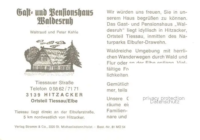 73849413 Hitzacker_Elbe Gast- und Pensionshaus Waldesruh Terrasse Hitzacker Elbe postalisch nicht gelaufen nach 1965 Werbekarte (keine Postkarte) Erhaltung siehe scans [FriedD77] Werbekarte (keine Postkarte)[Frierer ]