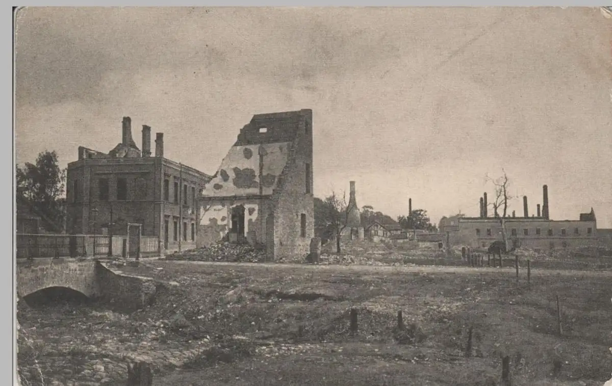 - (73950) Ansichtskarte, postcard, PPC - 1. WK, Mitau, Lilienfeldstr., zerstörter Ort, Feldpost 1916