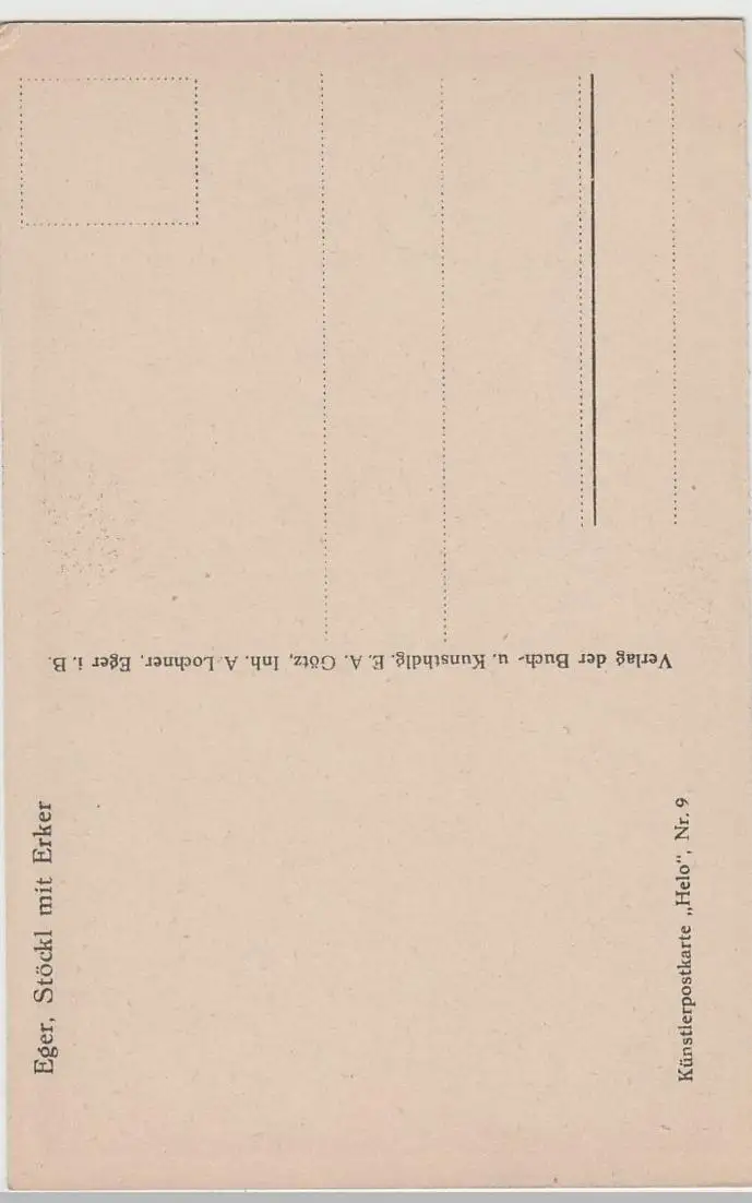- (75495) Ansichtskarte, postcard, PPC - Eger, Cheb, Špalíček, Stöckl mit Erker, Kirche St. Nikolaus