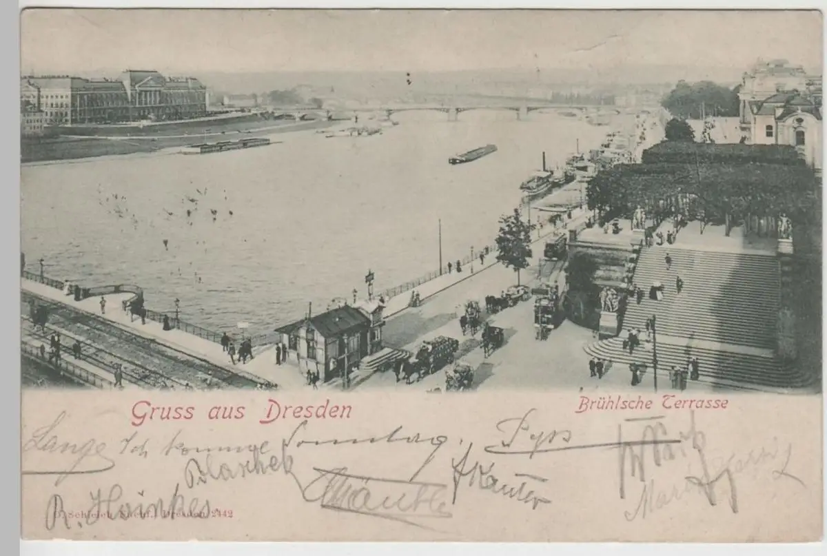 - (75975) Ansichtskarte, postcard, PPC - Gruß aus Dresden, Brühlsche Terrasse, um 1900
