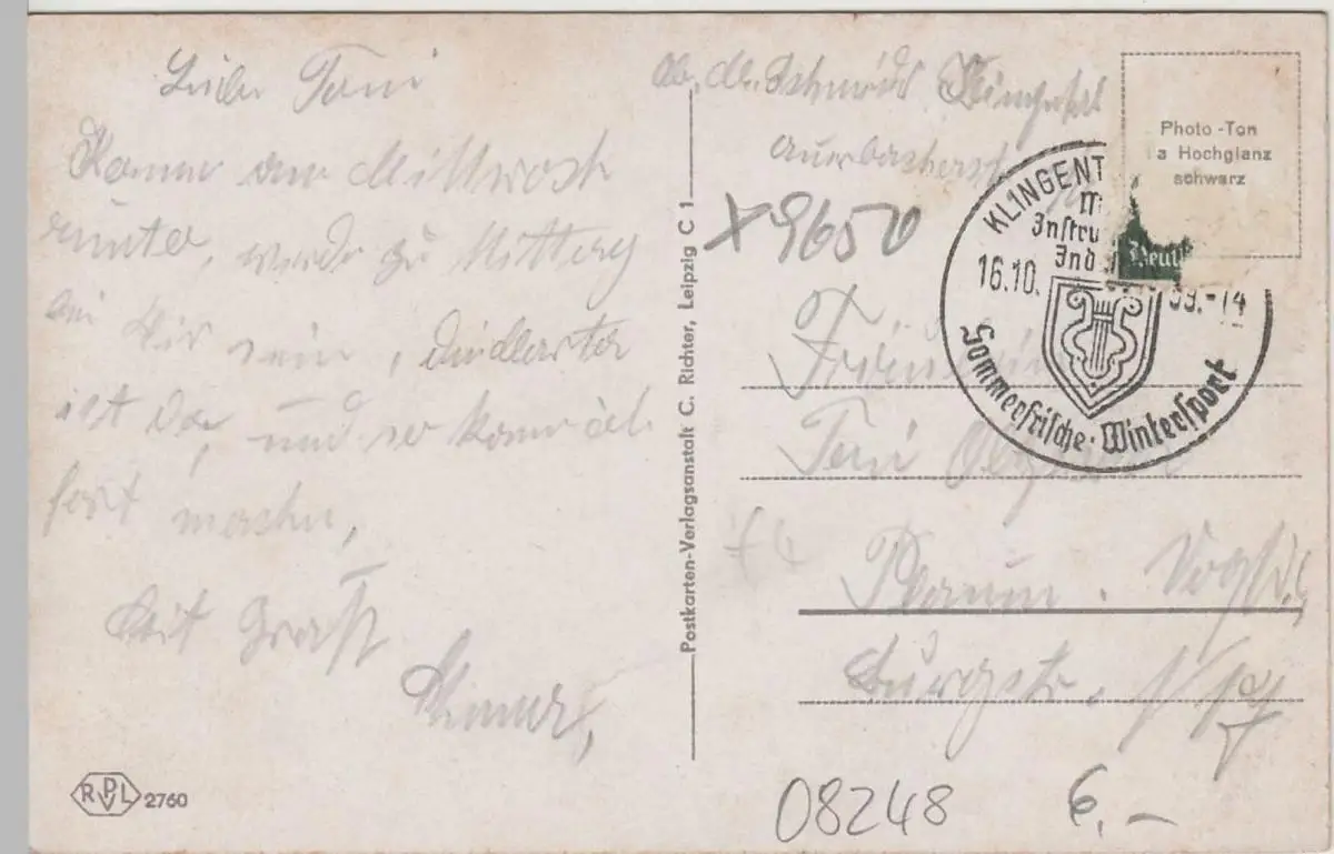Diese Postkarte wurde von meinem Opa geschrieben und versendet. Ein Stück Erinnerung von fast 100 Jahren