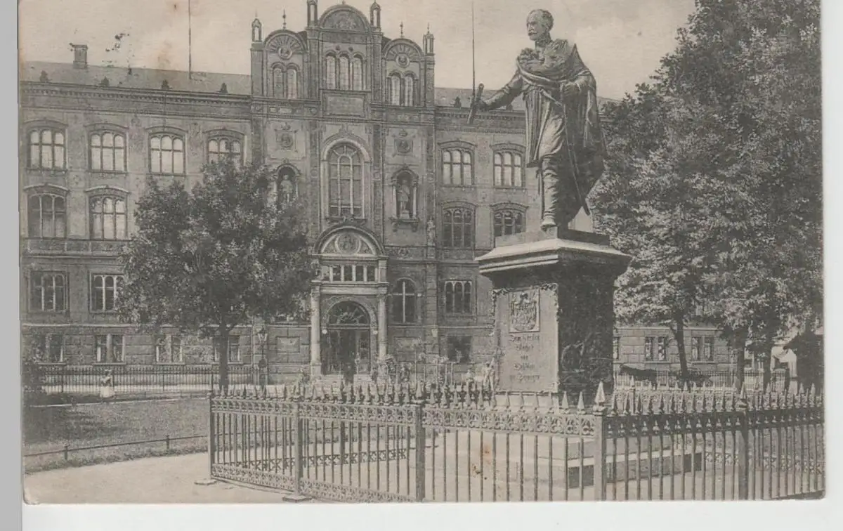 - (76368) Ansichtskarte, postcard, PPC - Rostock, Universität, Blücher Denkmal 1915