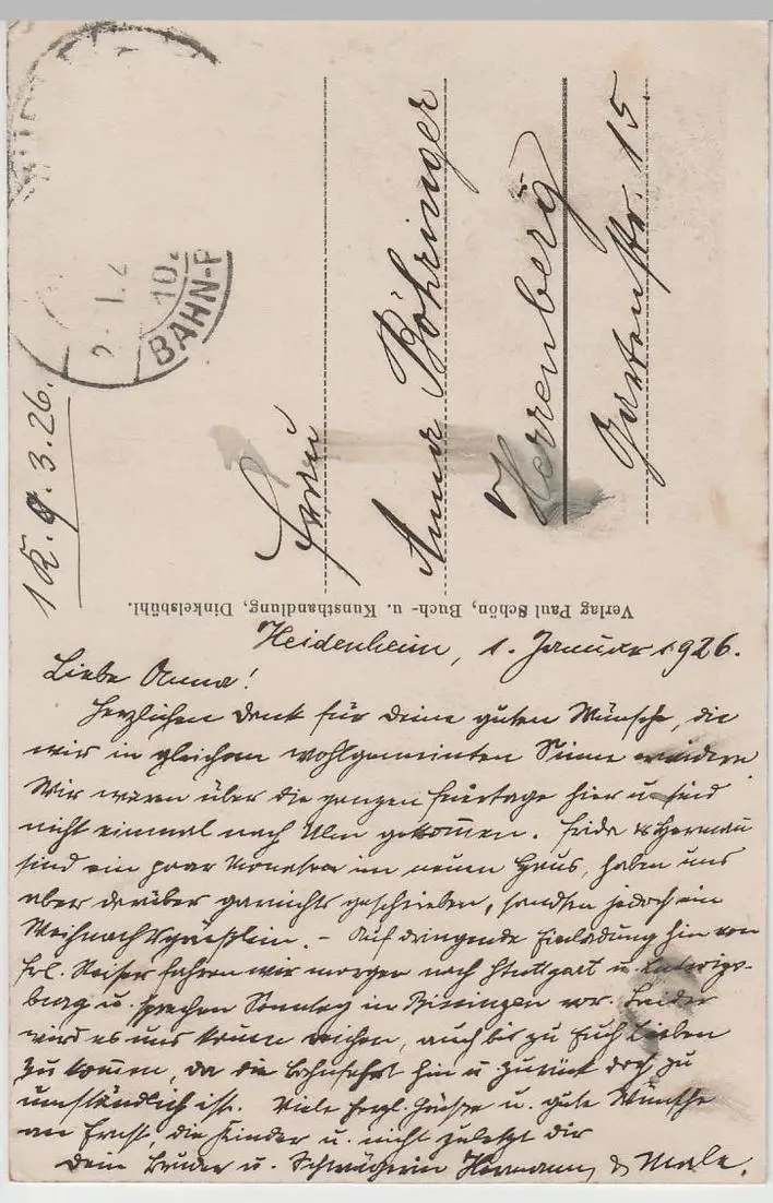Diese Postkarte wurde von meinem Opa geschrieben und versendet. Ein Stück Erinnerung von fast 100 Jahren