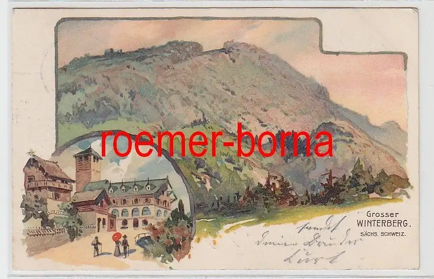 77129 Ak Lithografie Grosser Winterberg Sächs. Schweiz 1904