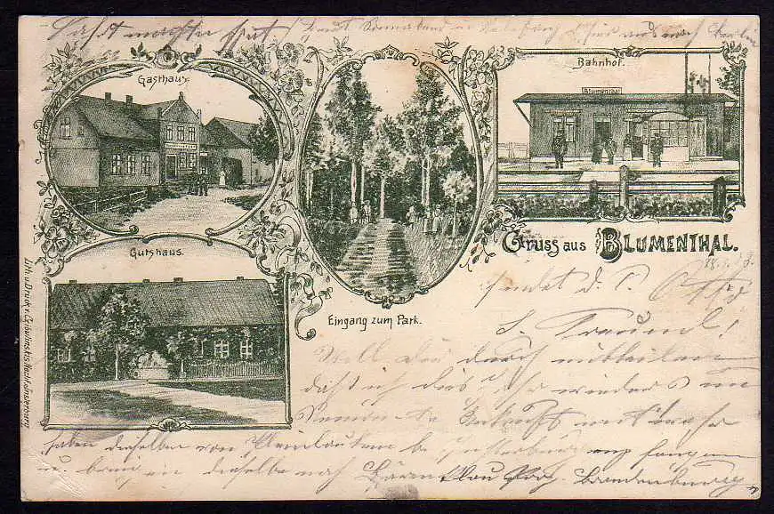 77365 Ansichtskarte Blumenthal Bahnhof Gasthaus Gutshaus 1903