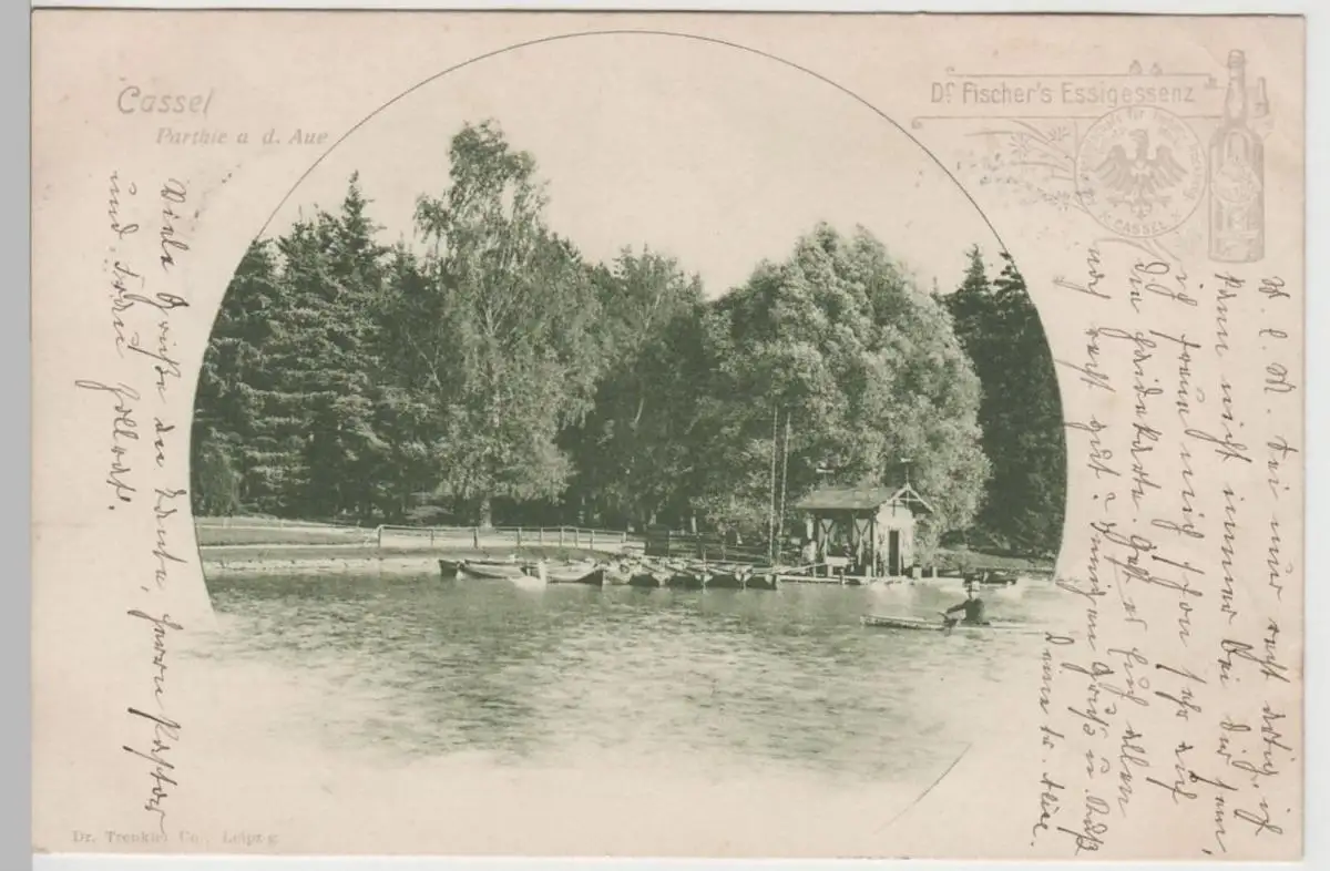 - (78074) Ansichtskarte, postcard, PPC - Kassel, Partie an der Aue, 1900