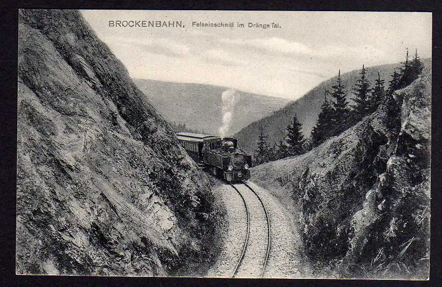 78299 Ansichtskarte Brockenbahn Felseinschnitt im Dräge Tal Dampflok