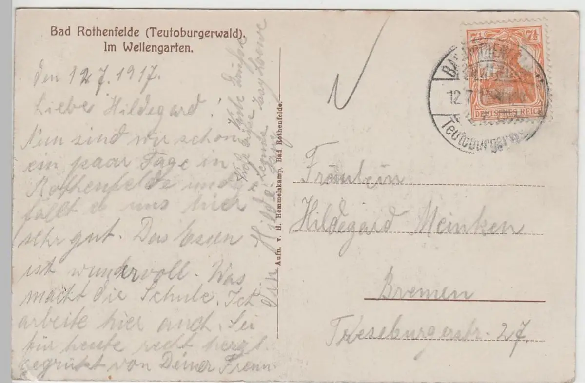 - (78705) Ansichtskarte, postcard, PPC - Bad Rothenfelde, Im Wellengarten 1917