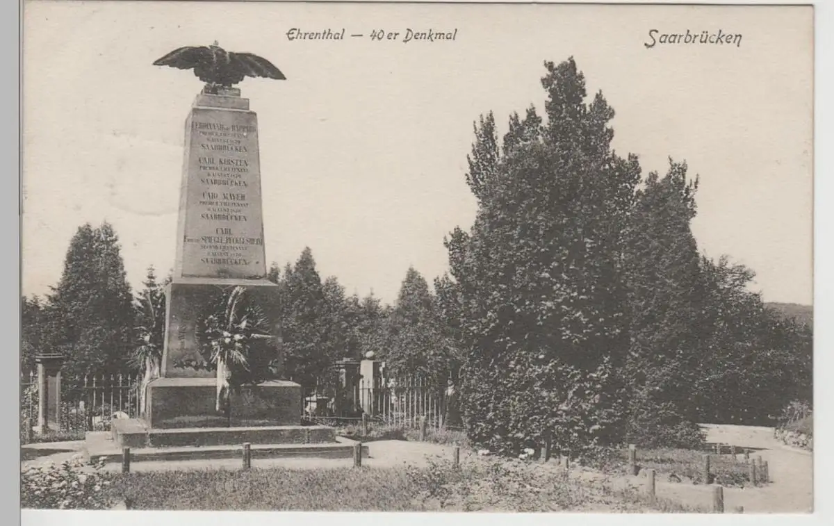- (79074) Ansichtskarte, postcard, PPC - Saarbrücken, Ehrenthal, 40er Denkmal, 1907