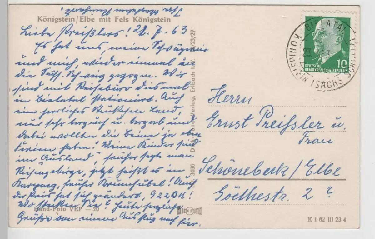 - (79155) Foto Ansichtskarte, postcard, PPC - Sächs. Schweiz, Königstein, Stadt u. Festung 1963
