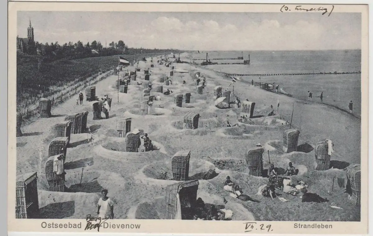 - (79593) Ansichtskarte, postcard, PPC - Ostseebad Ost-Dievenow, Dziwnów, Strandleben, 1929