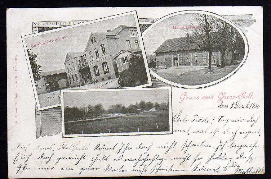 79648 Ansichtskarte Großsolt 1900 Gasthof Hauptlehrerwohnung Mühlenbrück