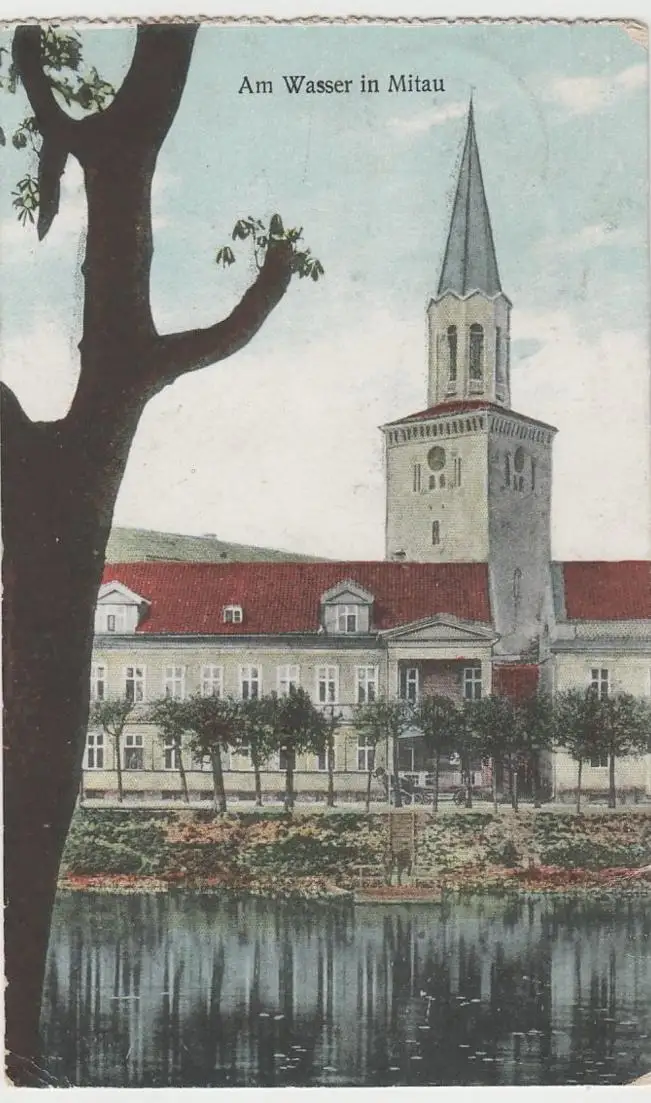 - (80270) Ansichtskarte, postcard, PPC - Jelgava (Mitau), am Wasser, Feldpost 1917