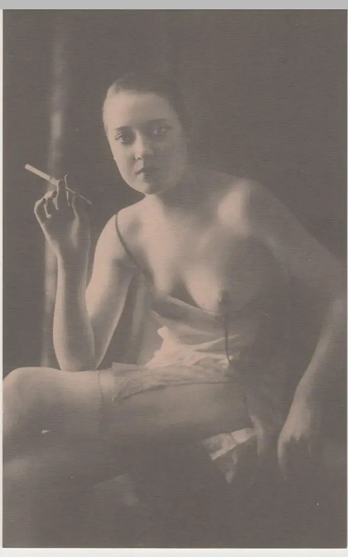 - (81197) Ansichtskarte, postcard, PPC - Junge Frau in Unterwäsche mit Zigarette, bis um 1905