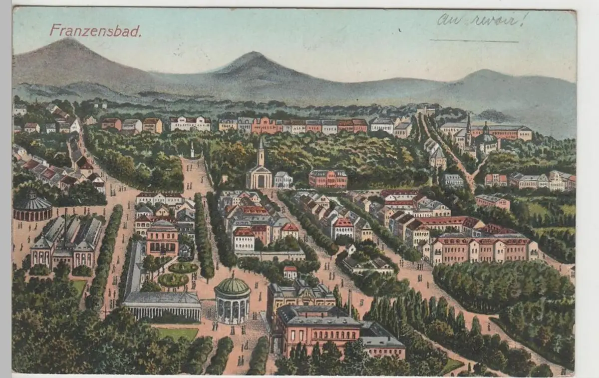 - (81558) Künstler Ansichtskarte, postcard, PPC - Franzensbad, Františkovy Lázně, Totale 1911