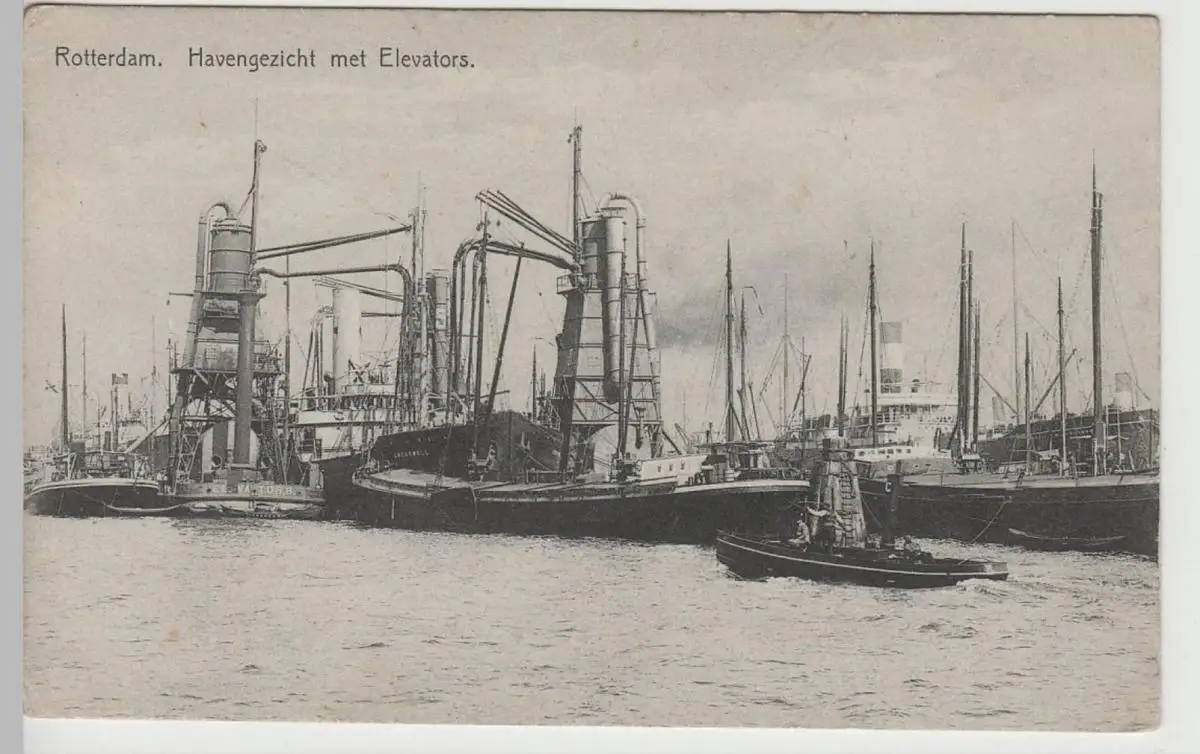 - (82520) Ansichtskarte, postcard, PPC - Rotterdam, Havengezicht met Elevators, vor 1945