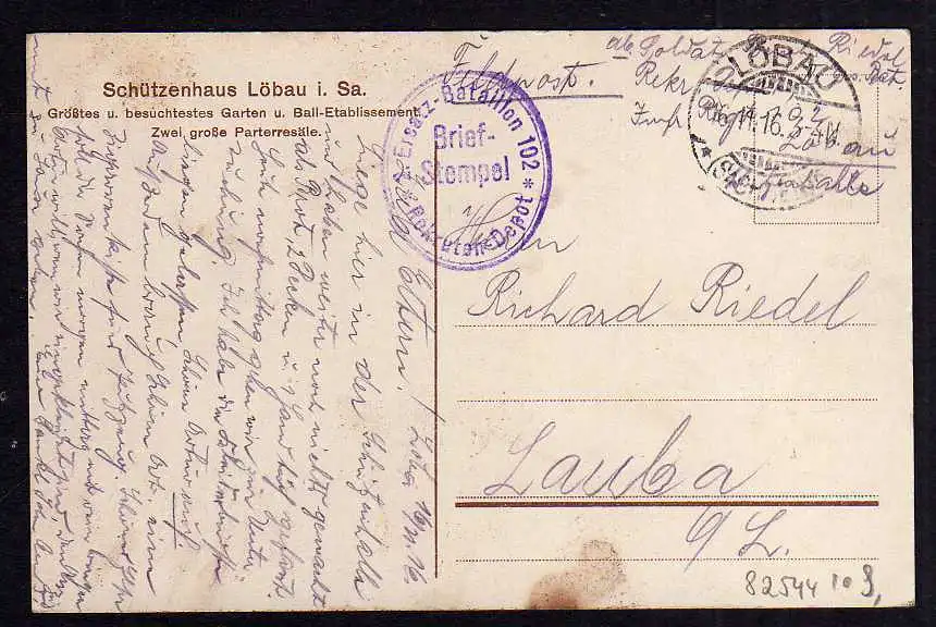 82544 Ansichtskarte Löbau Schützenhaus 1916 Feldpost Rekrutendepot Ball Etablissemant