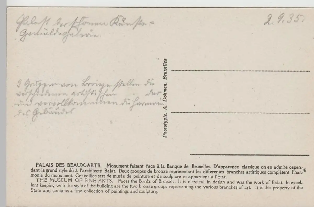 - (82667) Ansichtskarte, postcard, PPC - Brüssel, Bruxelles, Musée des Beaux Arts 1935