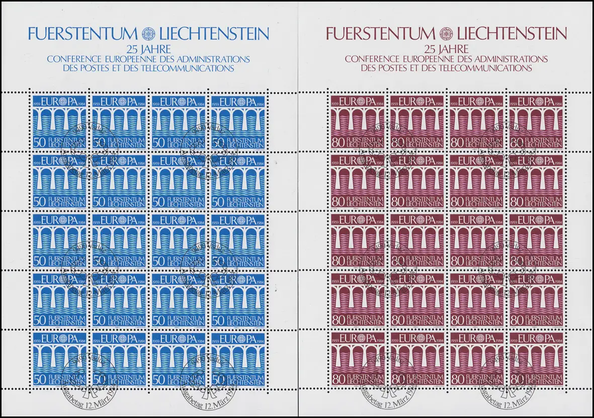 837-838 Europa /CEPT - Brücken 1984, Kleinbogen-Satz ESSt VADUZ 12.2.1984