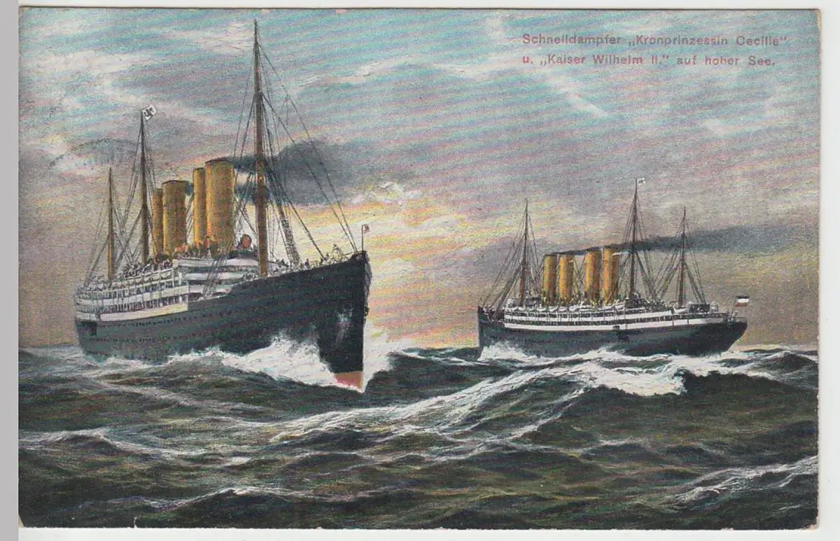 - (84329) Künstler Ansichtskarte, postcard, PPC - Schnelldampfer Kronprinzessin Cecilie 1910