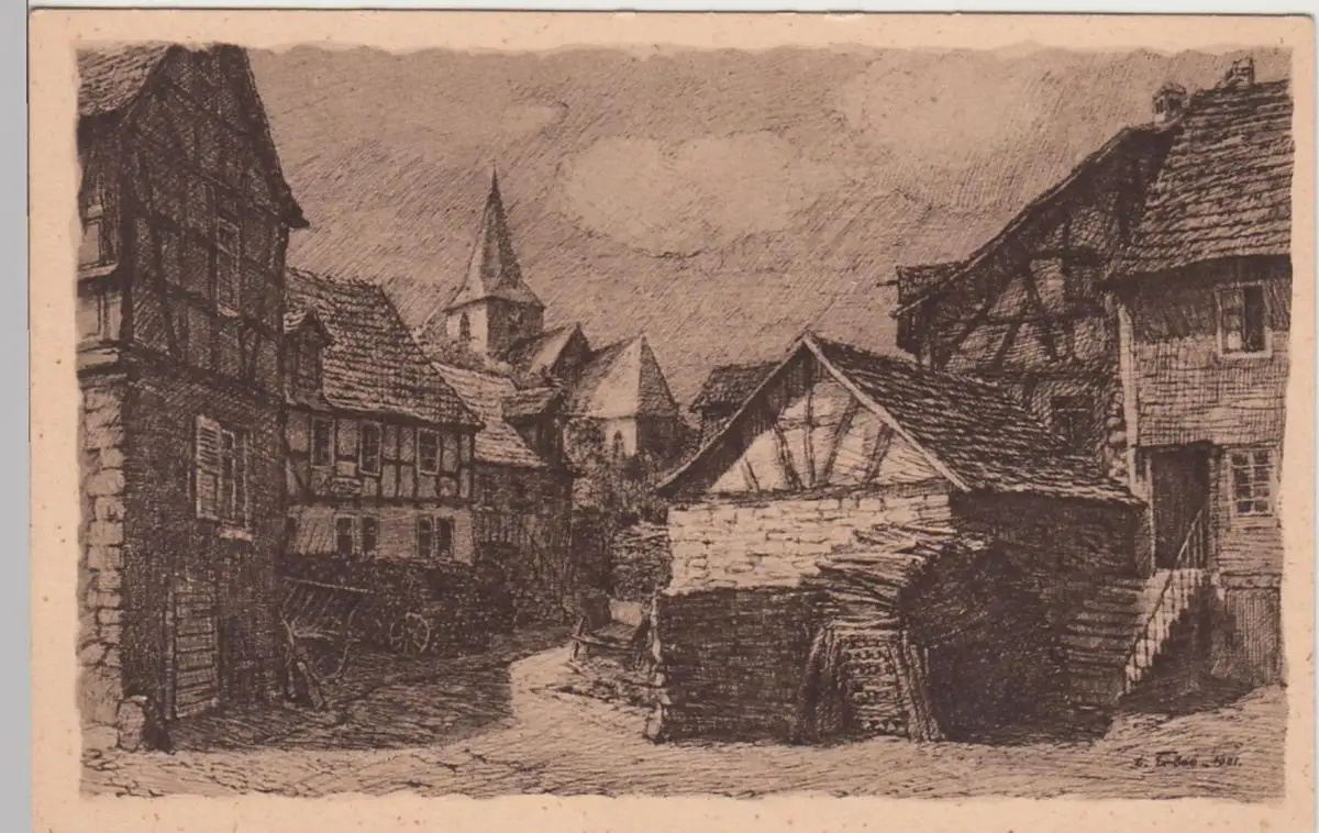 - (84806) Künstler Ansichtskarte, postcard, PPC - Bad Orb, Partie aus dem Freihof, vor 1945